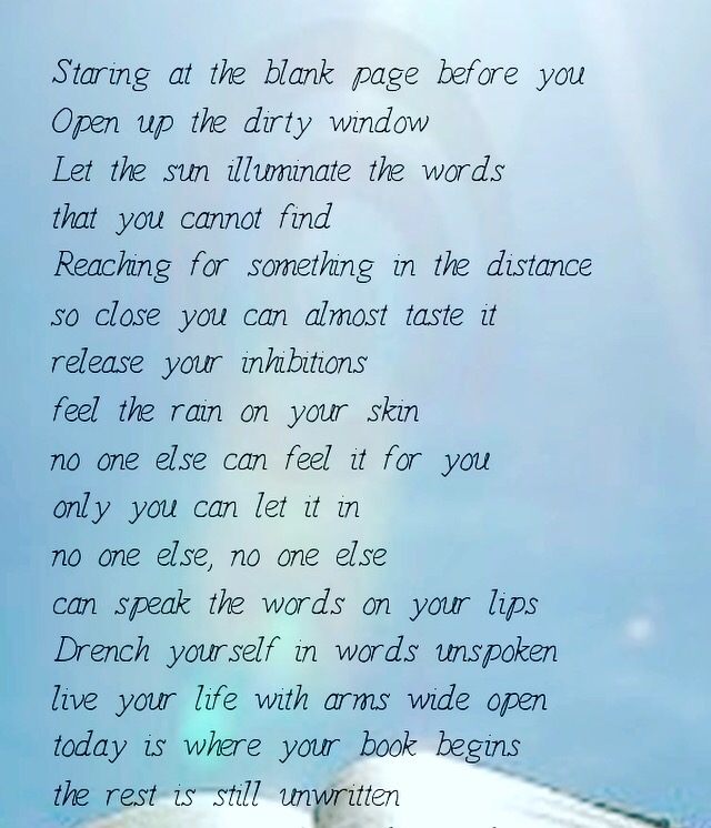 Tonight I am taking these lyrics literally…because I’ve been staring at blank pages for quite some time now, and to be honest I can only understand this song in terms of writer’s block. Of course the rest is still unwritten, because lately I’ve been an uninspired butt-munch. But I am a writer if nothing else, and I shall begin the rest of my book! Tomorrow.