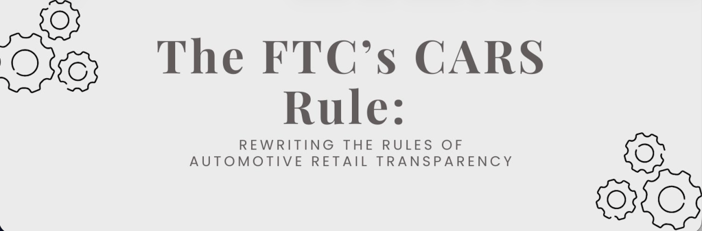 In December 2023, the Federal Trade Commission (FTC) introduced the Combating Auto Retail Scams (CARS) Rule, a sweeping regulatory effort aimed at curbing deceptive practices in vehicle sales. Designed to address bait-and-switch tactics, hidden fees, and misleading financing offers, the Rule imposes new disclosure and recordkeeping requirements on dealerships. This article explores the legal foundations of the CARS Rule, the industry’s response, and its implications for consumer protection and dealership compliance. It argues that while the Rule introduces necessary safeguards, its implementation must balance transparency with operational feasibility.